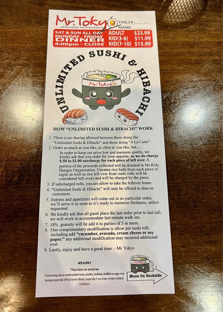 Explore the culinary delights of Mr Tokyo Japanese Restaurant, located in Charlotte, NC. This Japanese gem offers a variety of sushi, hibachi, and salad options, catering to both meat lovers and vegans. The restaurant provides a casual dining experience with excellent service, making it ideal for group gatherings or family dinners. Customer reviews rave about the delicious rolls like the Angel Hair Roll and Treasure Island Roll, as well as the flavorful Nigiri options such as Tuna and Tilapia. The establishment offers convenient amenities like delivery, takeout, and catering services, ensuring a seamless dining experience for all guests. With a menu that caters to diverse tastes and a cozy ambiance, Mr Tokyo Japanese Restaurant is a must-visit for anyone craving authentic Japanese cuisine in Charlotte.